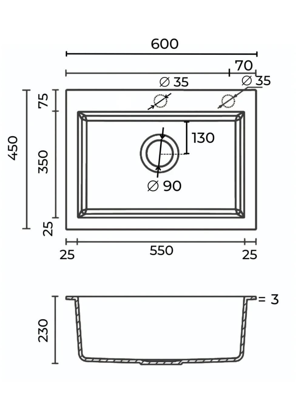 Кухонная мойка «Milani» 600×450 мм графит