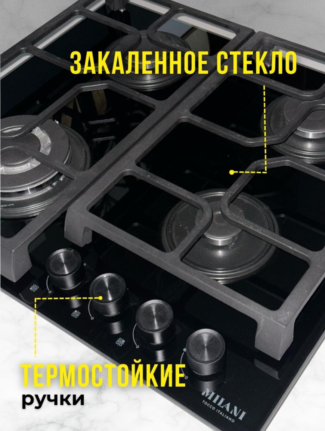 Газовая панель MILANI AURA BLG6L4GT черное стекло